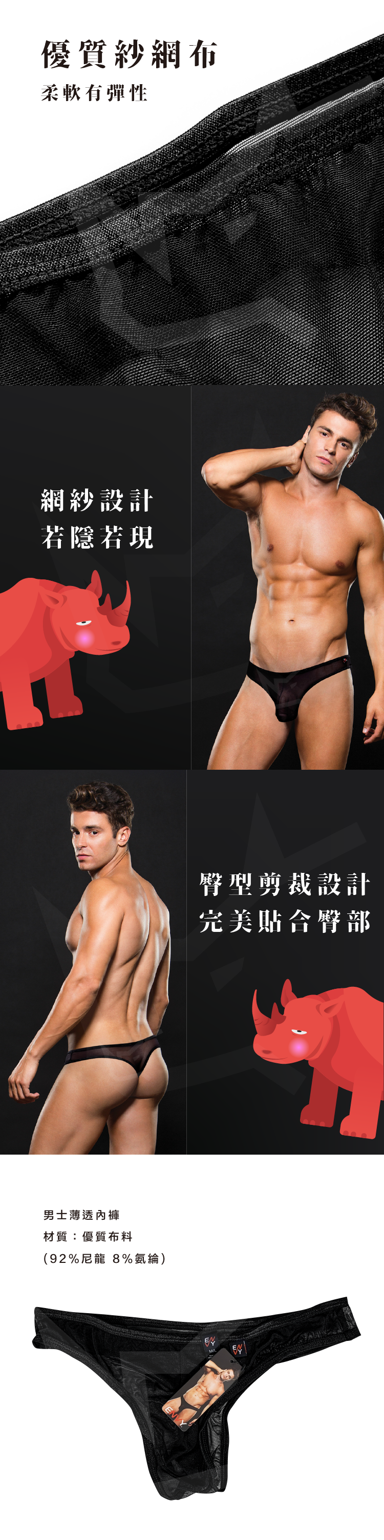 【男士薄透三角褲】| 網紗誘惑感、舒適布料 ENVY Thong